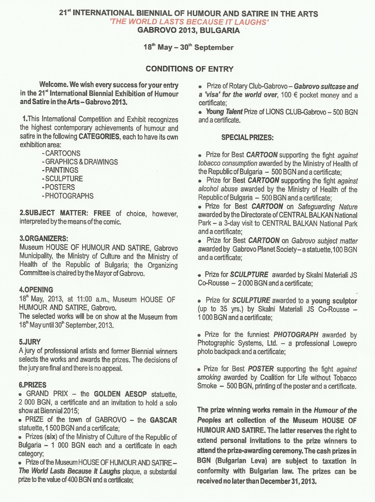 - Grand Prix on the “12th International Cartoon Contest” in Daejeon, South Korea (2003);