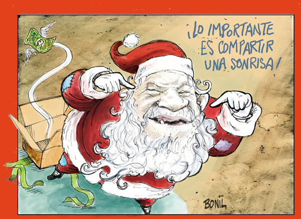 Ahora, próximo a las festividades por la Navidad y el Año Nuevo, he recibido múltiples tarjetas de caricaturistas, donde cada uno de ellos nos ofrece una visión particular sobre este acontecimiento, que debe provocar una reflexión en medio del caos, egoísmo, ambición, insolidaridad, consumismo y crisis, que caracterizan a las sociedades en que vivimos, donde los más pobres sufren las injusticias.