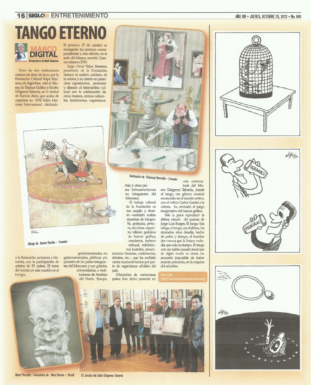 Dibujo de Jarape (Colombia); de Elihu (Brasil); Raúl de la Nuez (USA) y Jesús Francisco Carreño (España).
